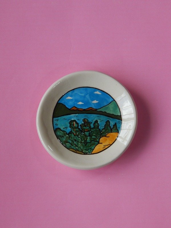 Platito de ceramica hecho e ilustrado completamente a mano. (pieza unica) 10cm