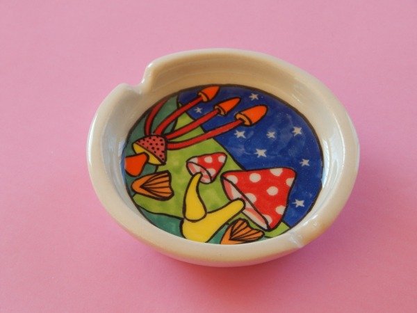 Cenicero de ceramica hecho e ilustrado a mano. (pieza unica)