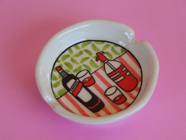 Cenicero de ceramica hecho e ilustrado completamente a mano. (pieza unica)