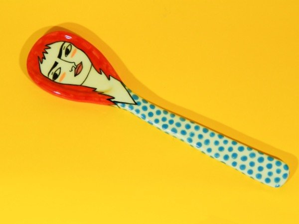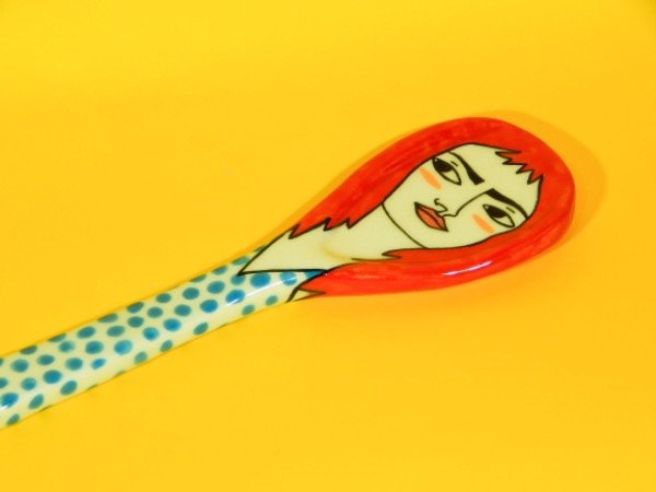 Cuchara de cerámica hecha e ilustrada completamente a mano. (Pieza única)
