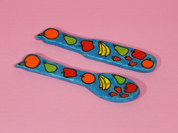 Juego de cuchara y untador de cerámica hecho e ilustrado completamente a mano. (Piezas únicas)