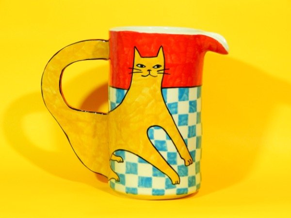Jarra de cerámica hecha e ilustrada completamente a mano. (Pieza única)