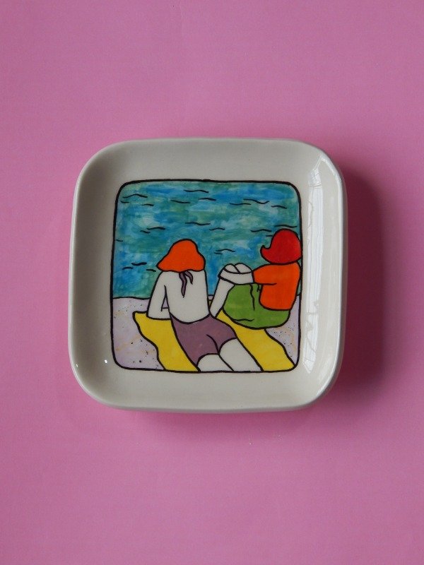 Platito de ceramica hecho e ilustrado completamente a mano. (pieza unica) 13cm