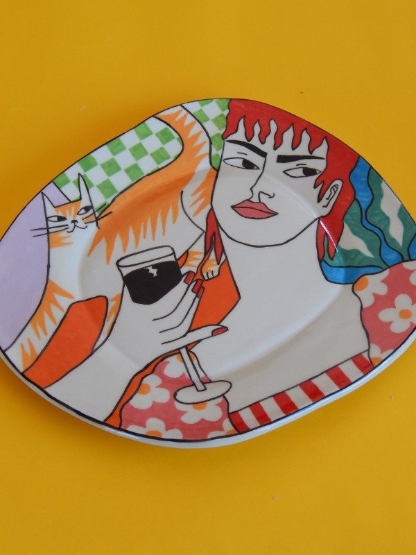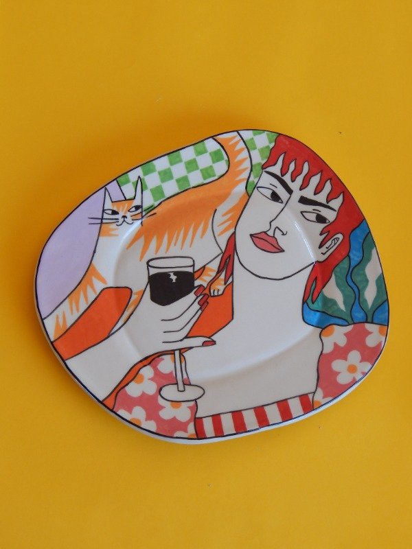Plato de ceramica hecho e ilustrado completamente a mano. (pieza unica)