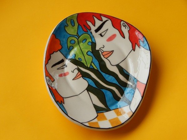 Plato de ceramica hecho e ilustrado completamente a mano. (pieza unica)