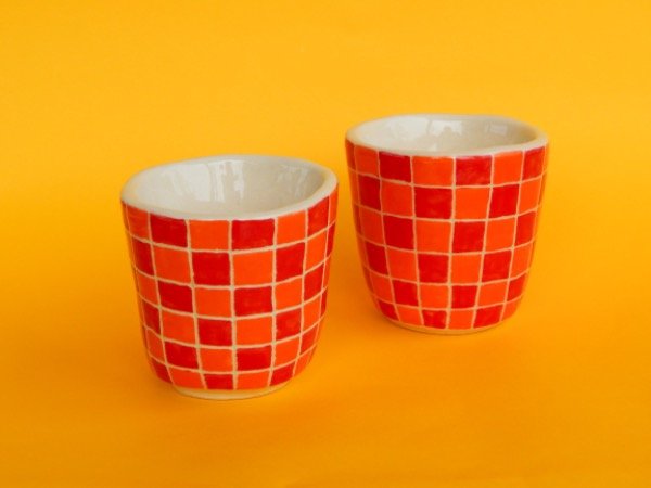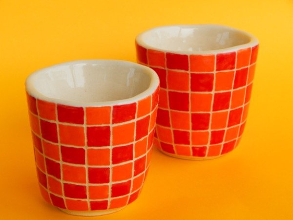 Vasitos de cerámica hechos e ilustrados completamente a mano. (Piezas únicas)